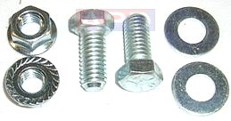 Includes thread cutting hex head screws and external tooth lock