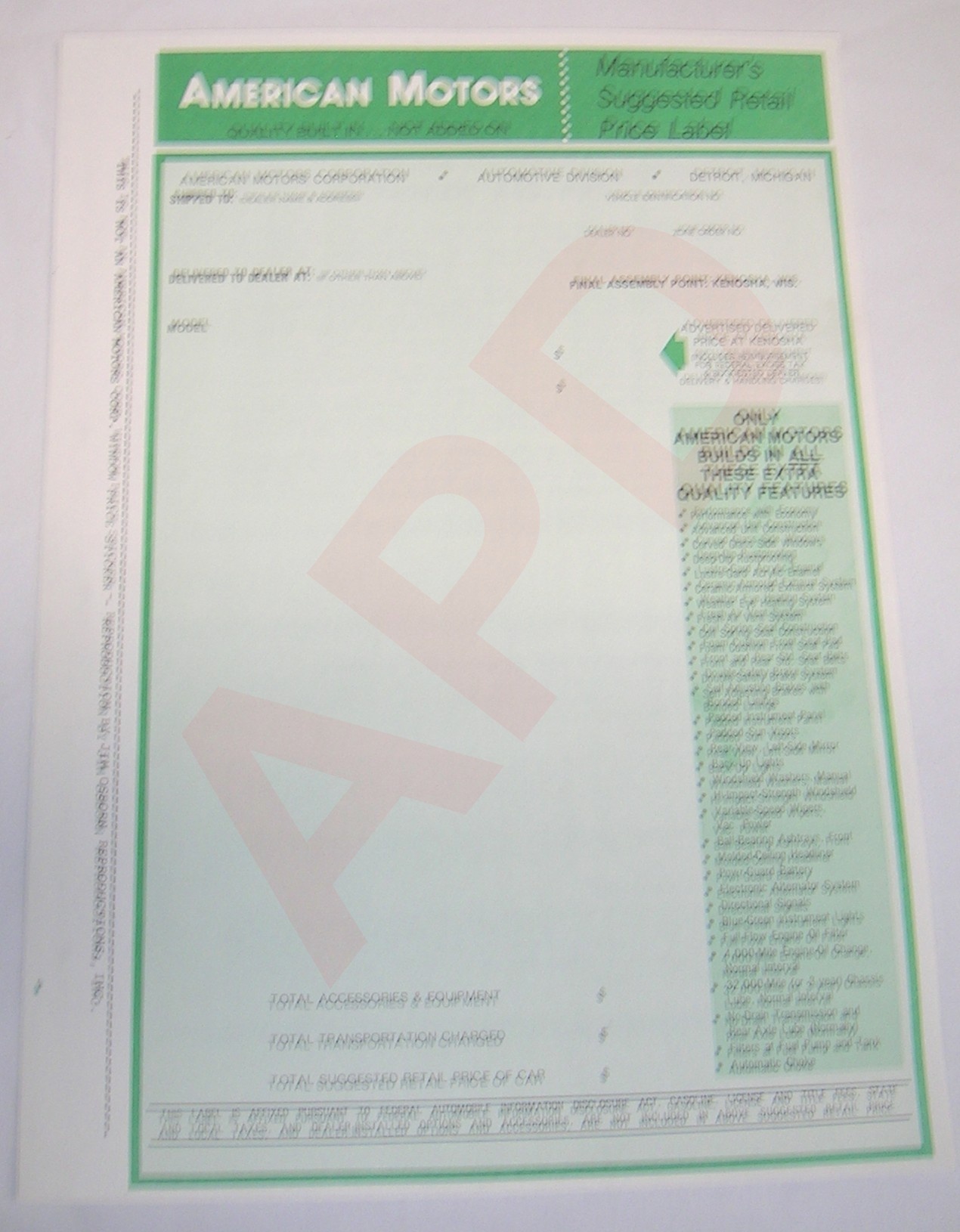 Style" (An excellent reproduction of the 1972 AMC original.