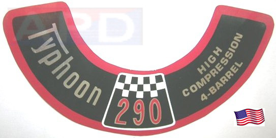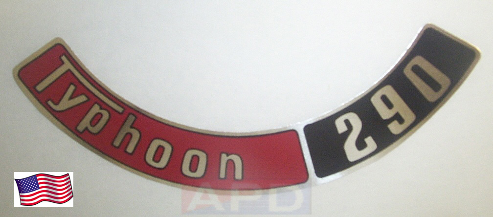 Air Cleaner Engine I.D. Sticker ("Typhoon 290") for United Air Cleaner w/9" filter) - see above photo |