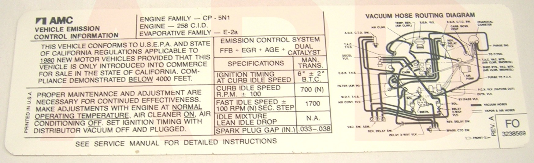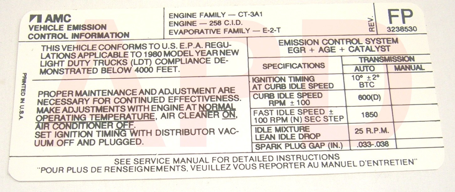 Air Cleaner Engine I.D. Sticker
